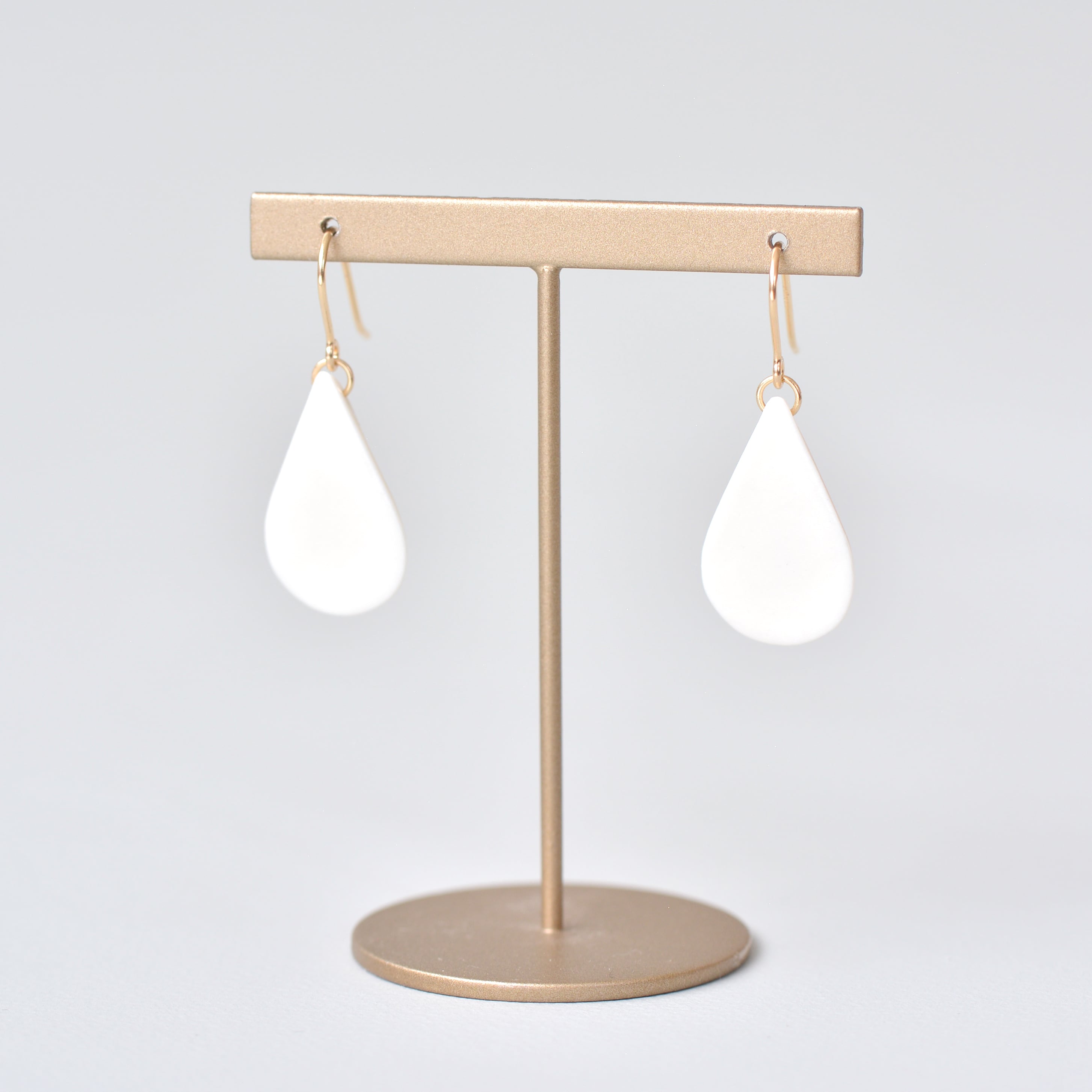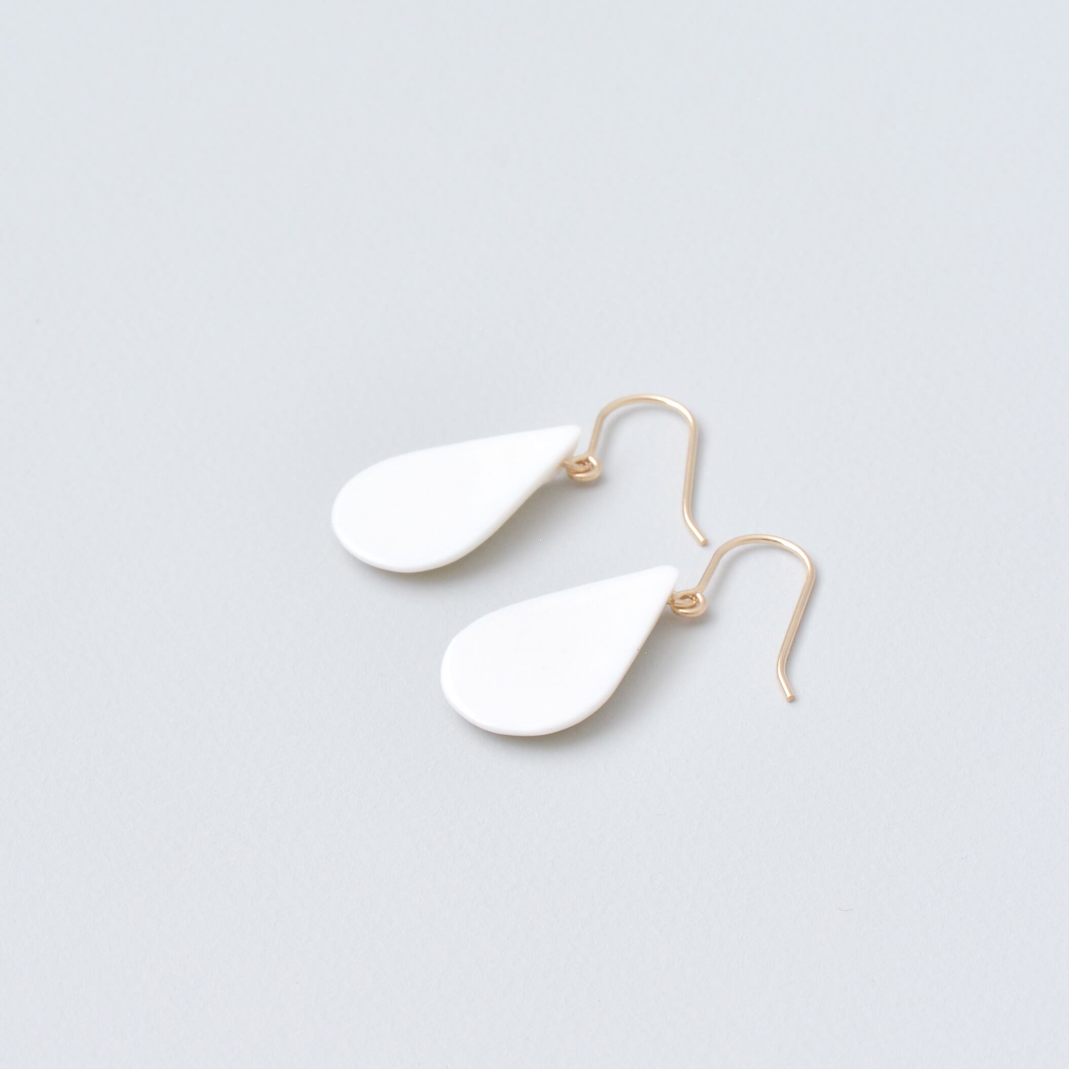 白磁から生まれたしずくのフォルムのプレートピアスです。
