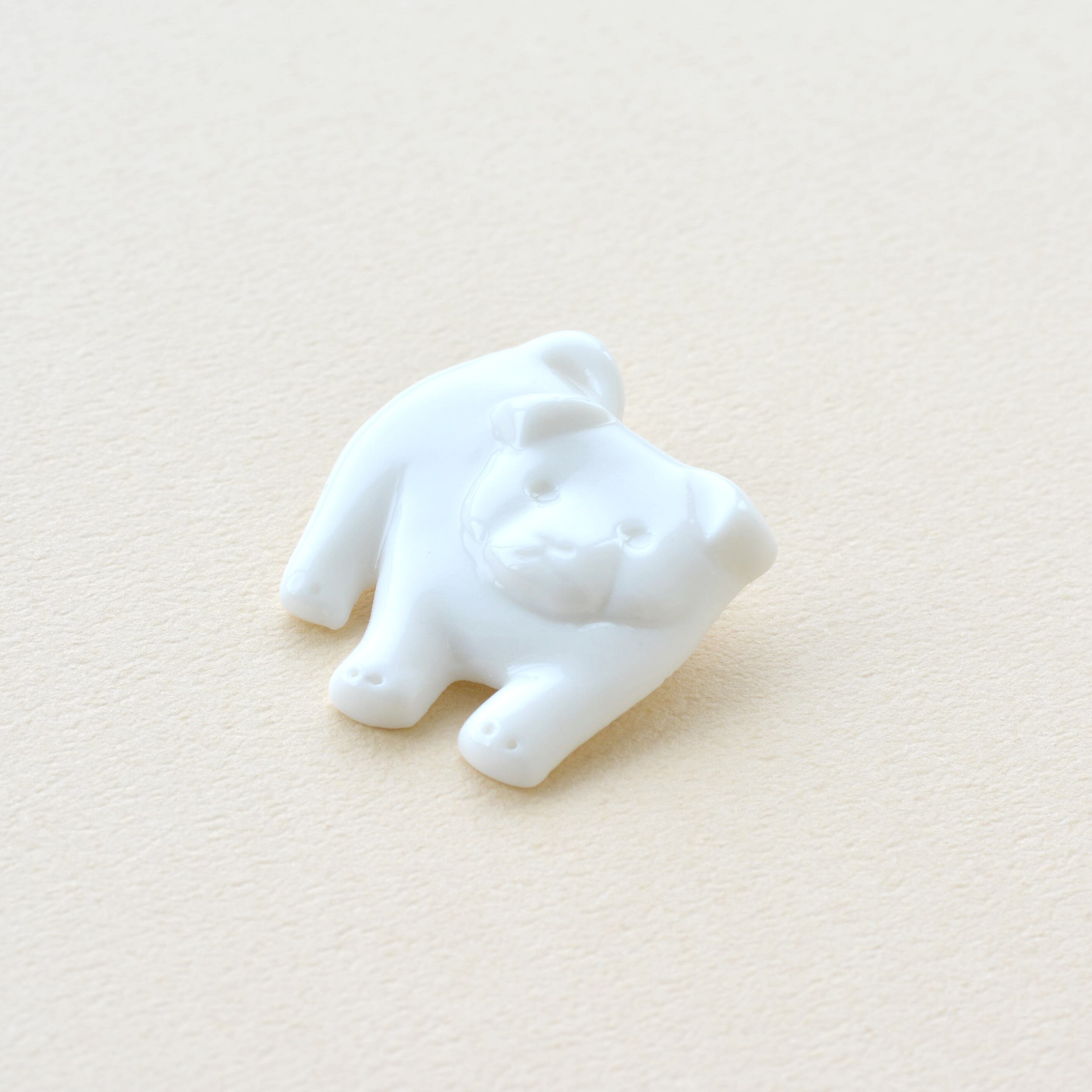 白磁で作られた、むくむくした子犬のブローチ。